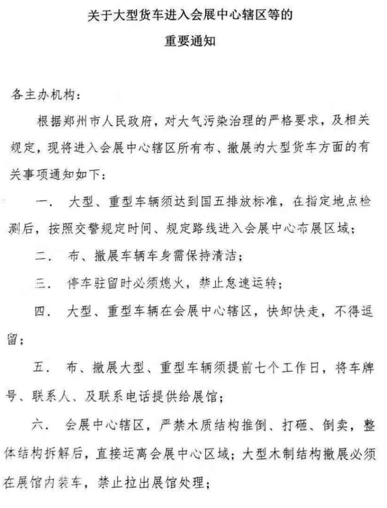 大貨車進入會展中心區(qū)域的通知