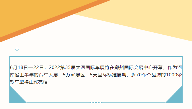 首頁新聞中心展會新聞文章詳情 文章詳情 第35屆大河國際車展即將開幕 6月18日—22日,2022第35屆大河國際車展將在鄭州國際會展中心開幕,作為河南省上半年的汽車大展,5萬㎡展區(qū),5天國際標準展期,近70余個品牌的1000余款車型將正式亮相。