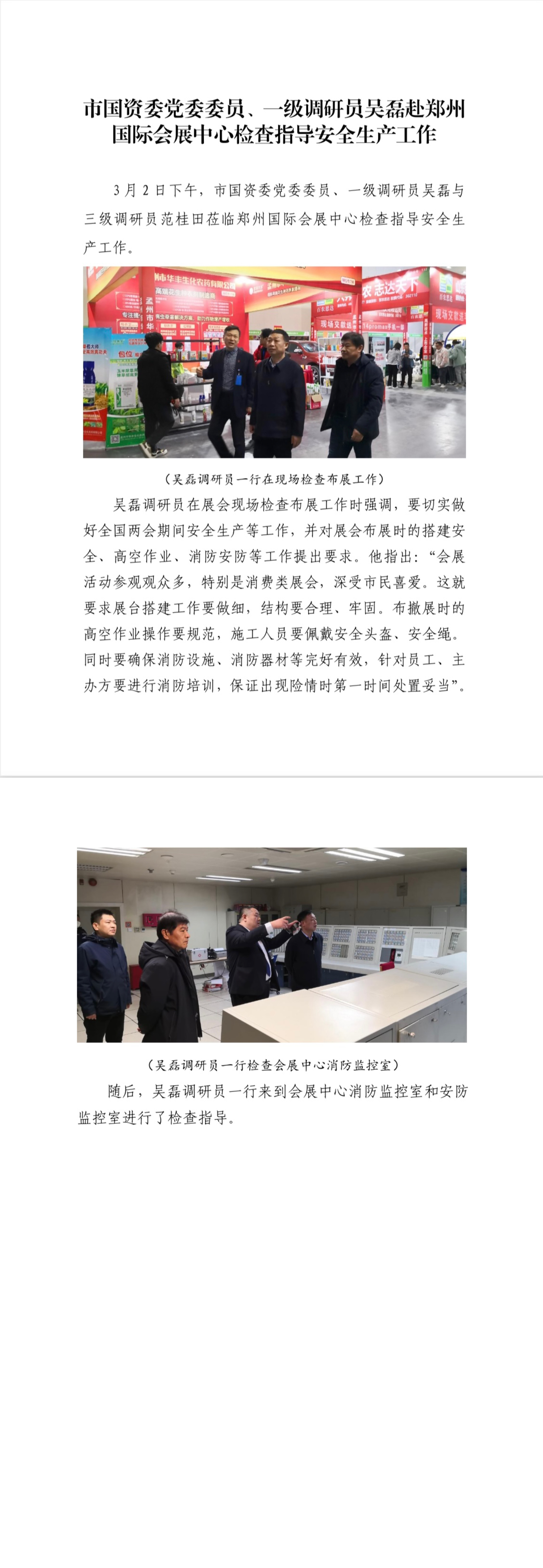 市國資委黨委委員、一級調(diào)研員吳磊赴鄭州國際會展中心檢查指導(dǎo)安全生產(chǎn)工作