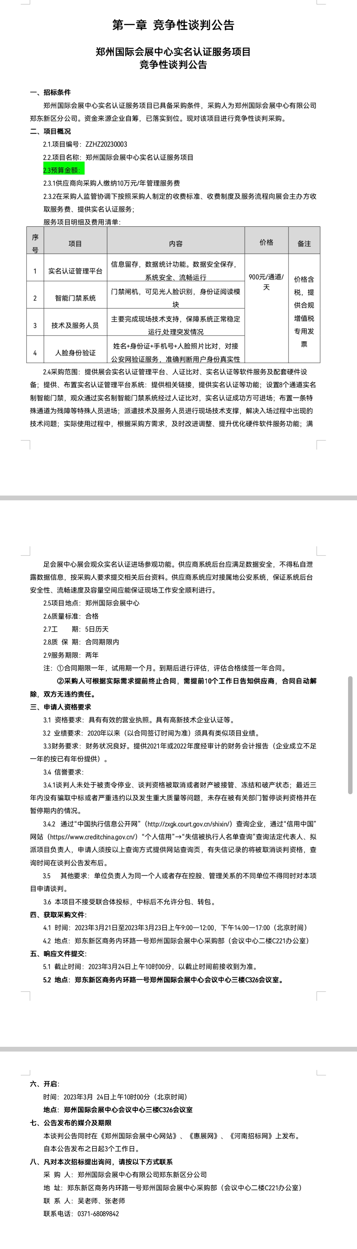 鄭州國際會展中心實(shí)名認(rèn)證服務(wù)項(xiàng)目 競爭性談判公告