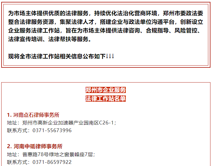 【轉(zhuǎn)載】鄭州市委政法委在全市設(shè)立企業(yè)服務(wù)法律工作站